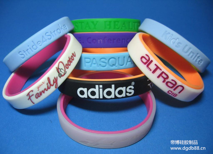 在购买硅胶手环的时候我们需要注意些什么呢?下面我们来详细了解,硅胶手环是纯天然固体硅橡胶经油压机压制而成,具备耐磨损、耐高温、不变形、无毒无味,有一定的张力及柔软性,变形恢复很快,同时具有柔软、不开裂、使用寿命长和不刺激皮肤等优点,是很好的绿色环保饰品。现在我们常见的手环有很多,布料的,金属的,硅胶的各种各样,所以手环在市场上面很受欢迎,但是怎么识别一个产品的质量,在硅胶制品行业里面材质识别的形式不同,我们在进行硅胶手环购买时可以用以下几点识别,
