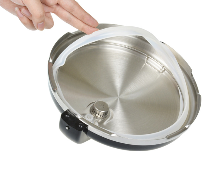 密封圈目前在市场上面有硅胶和橡胶的,硅胶材质的密封圈主要用于我们一些经常接触和对人体无危害的地方,橡胶制作的密封圈主要用于一些工业行业,农工行业上面的地方,目前市场上面的硅胶制品基本已经代替了很多的橡胶制品,在高压锅上面密封圈是镶嵌于高压锅锅盖上面起到密封和抗压力作用,常见的有铝制的内盖,直接用密封圈套上去,还有一种就是钢丝圈把密封圈镶在上面去,不过对于高压锅,密封圈的质量是最重要的,这往往影响到的是我们的人生安全问题,所以请大家下次使用时,多注意高压锅密封圈的细节问题!